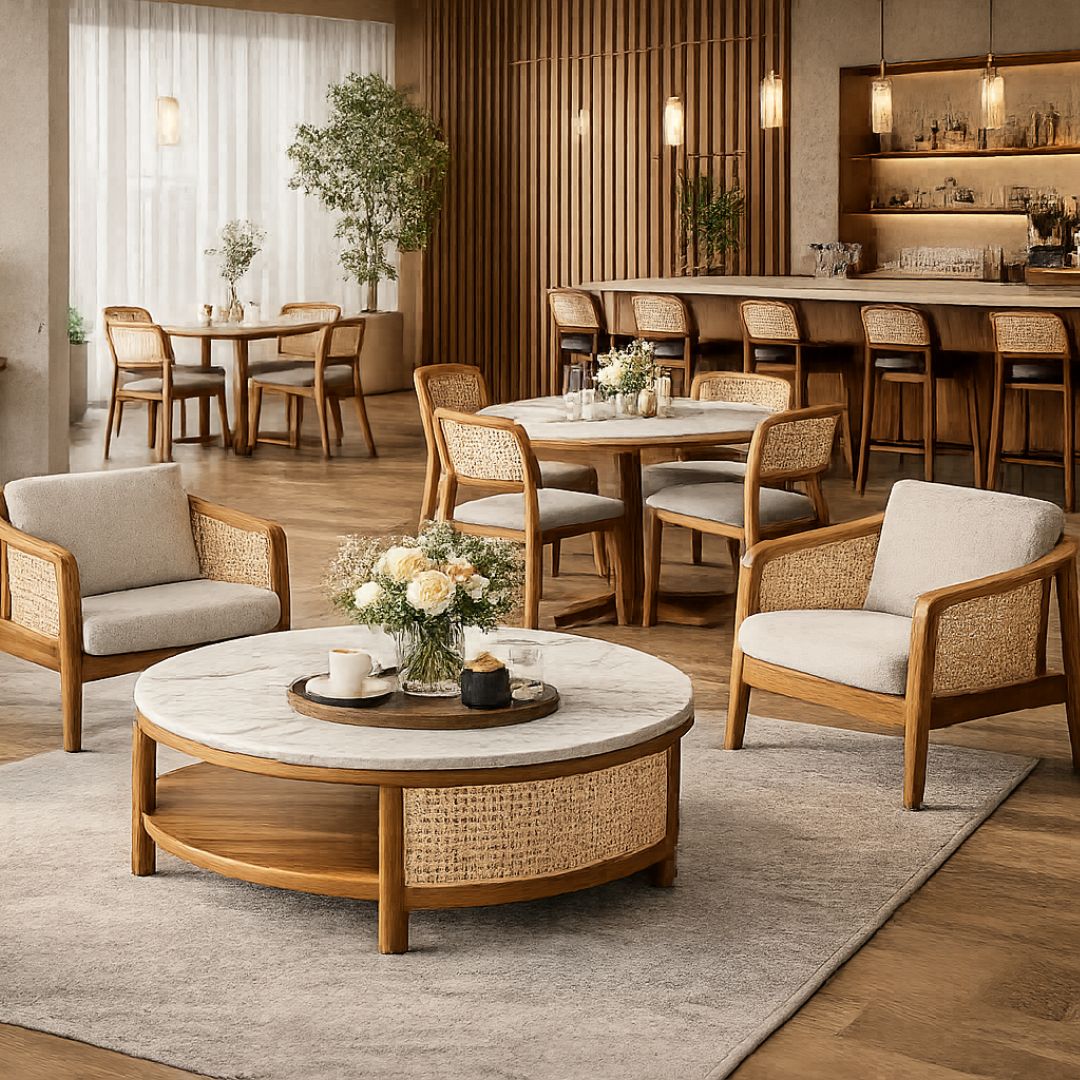 We also specialize in café and restaurant furniture, built to handle high-traffic environments without compromising on style. From sturdy dining tables and comfortable chairs to functional bar seating and statement pieces, our designs are created to enhance both durability and customer experience in commercial spaces.