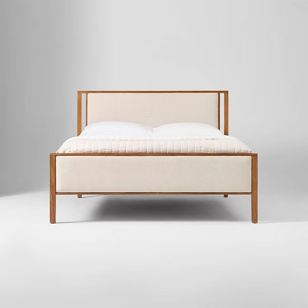 Axis Bed reinterprets a classic form with subtle, refined detailing. Its rich finish is complemented by neutral upholstery, creating a versatile look that integrates easily with a variety of interior styles.