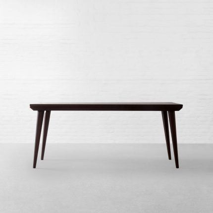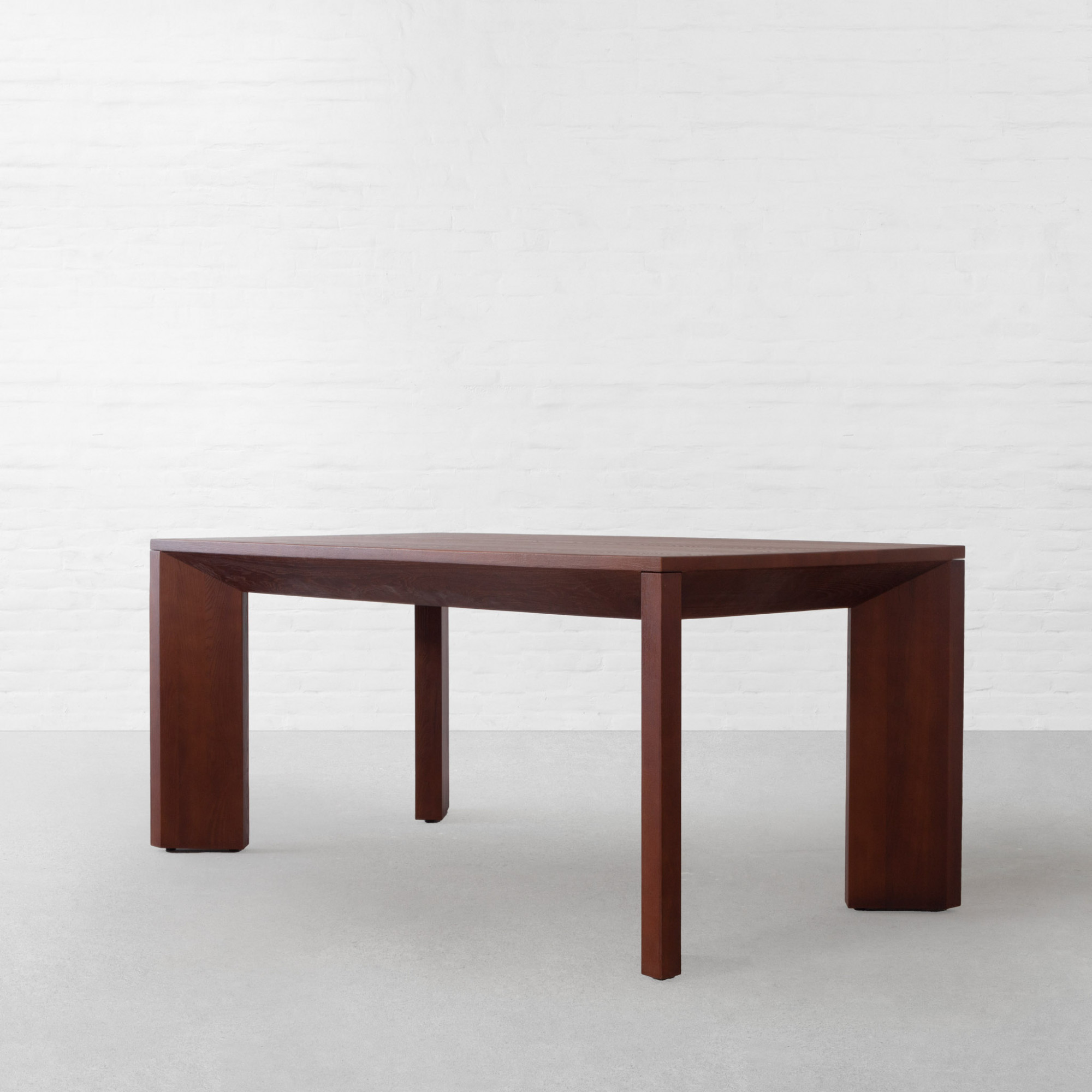 Imbued with a sense of understated, quiet luxury, this dining table is crafted from fine-quality wood, highlighting its natural richness and durability. The subtly angled legs set the design apart, introducing a refined visual interest while maintaining a composed silhouette.