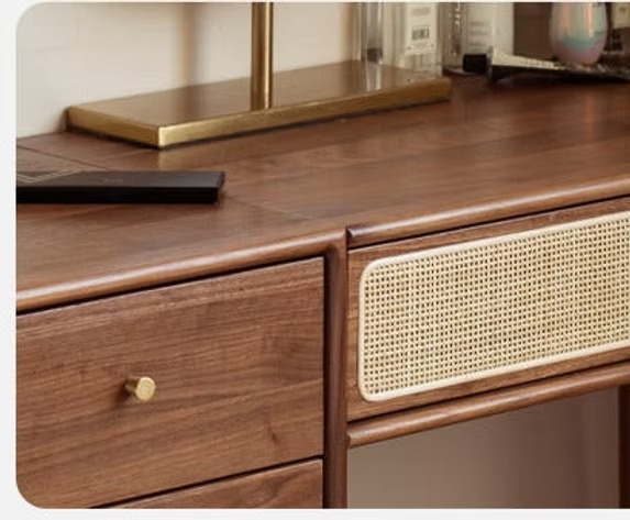 Good-looking dresser that can be installed. Calm black walnut wood with fresh rattan. The warm texture has more natural flavor. Wide and shallow drawer + three-drawer side cabinet.