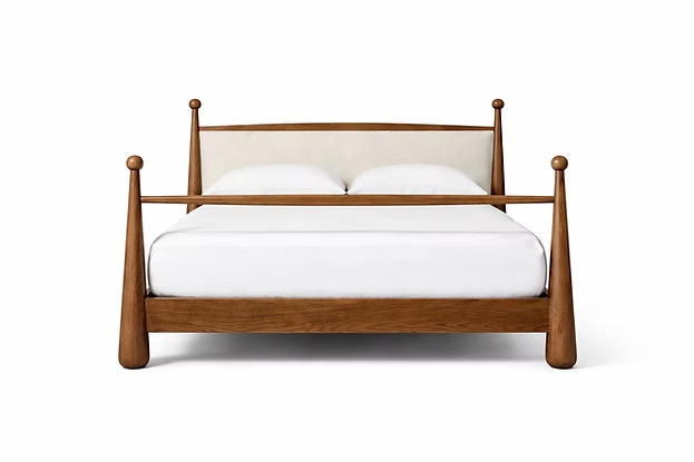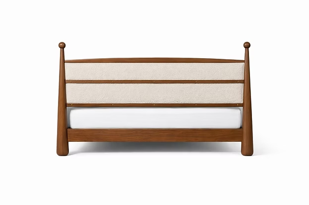Cloud Haven Bed is a distinctive piece that brings a subtle yet refined elegance to a wide range of interior styles. Its upholstered headboard offers comfort and texture, while the rounded, asymmetrical posts introduce a sculptural element. The open footboard enhances visual lightness, creating a balanced design that adds quiet interest and sophistication to any bedroom.