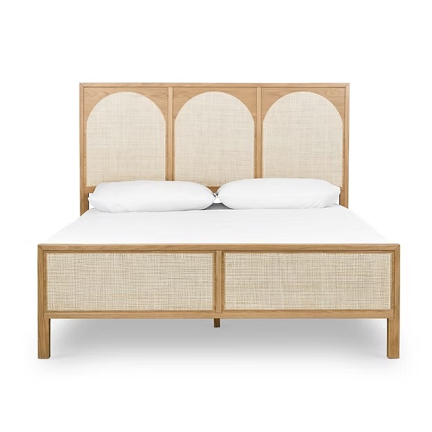 Desert Bloom Cane Bed captures a relaxed, rustic aesthetic through the use of natural materials. The woven rattan detailing introduces a calm, organic texture that brings a sense of tranquility to the space.