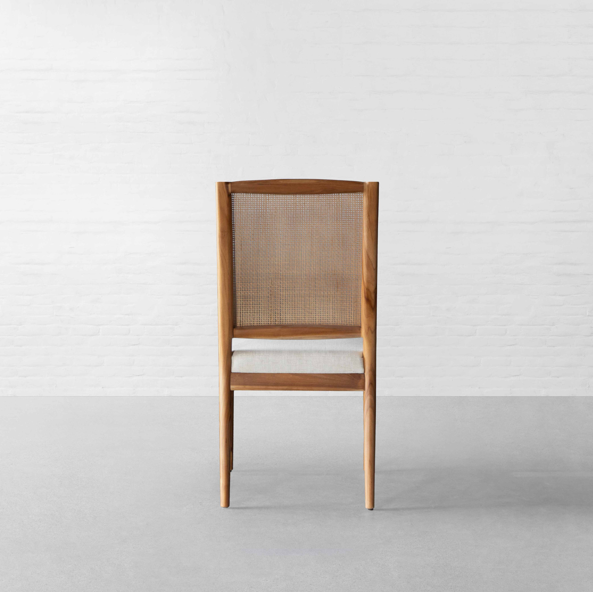 An expression of understated aesthetics, this chair merges simplicity with purposeful design. Built on a streamlined teak frame with a woven rattan backrest, it highlights the appeal of natural materials while remaining light and durable. Its clean silhouette and minimal form lend a quiet sophistication, while the blend of textures introduces warmth to the space. Balancing Scandinavian restraint with Japanese craftsmanship, it brings a calm, refined presence to the dining setting.