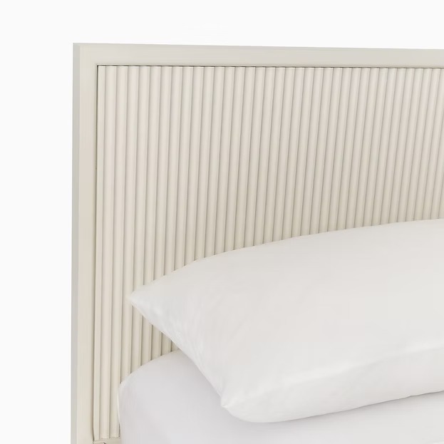 Mono Frame Bed features a streamlined silhouette defined by a thoughtful mix of materials. The contrast between smooth lacquered surfaces and solid wood elements creates a clean, modern aesthetic.