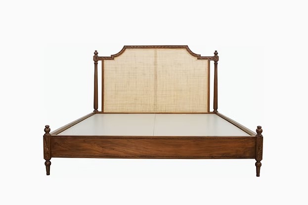 Regal Rest Cane Bed brings together artisanal craftsmanship and timeless design in a balanced, cohesive form. The woven cane headboard introduces texture and visual depth, while the hand-carved detailing highlights the skill and character of the piece. Its solid wood construction ensures durability, and the low footboard maintains an open, grounded profile.
